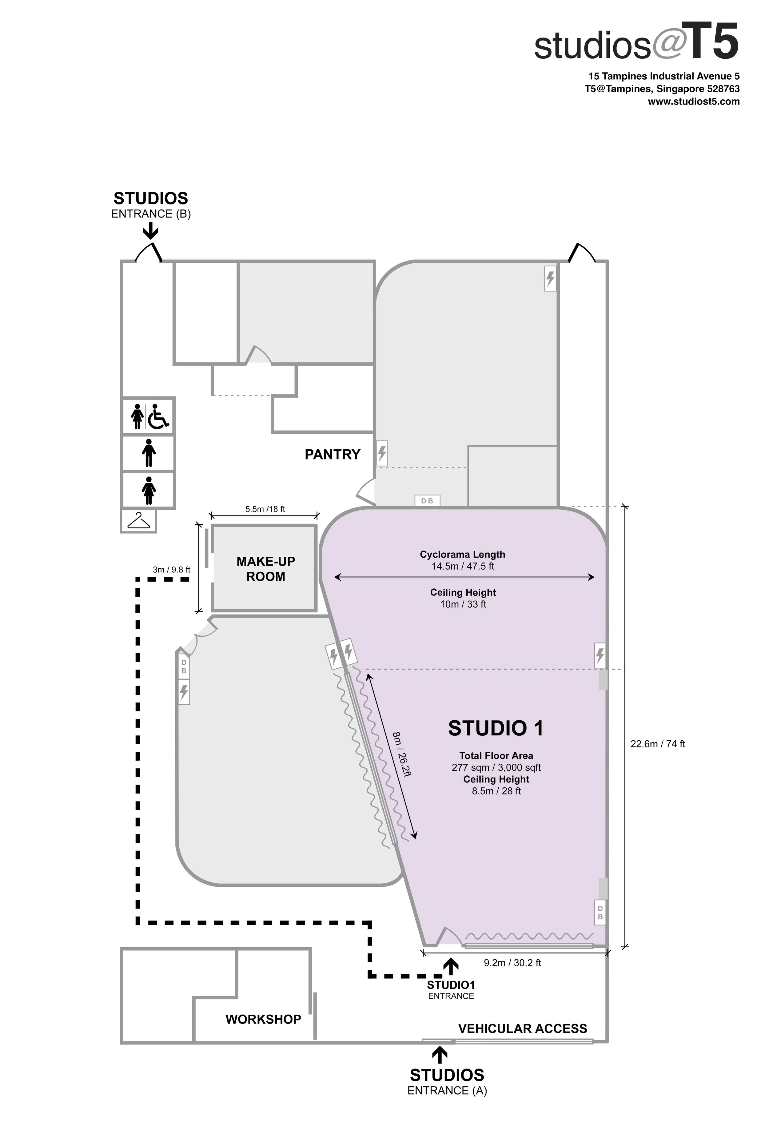 Studio One offers approximately 3,000 sq. ft of shooting space, with direct vehicular access from its dedicated entrance; ideal for set builds and car shoots. Terms and Conditions apply.