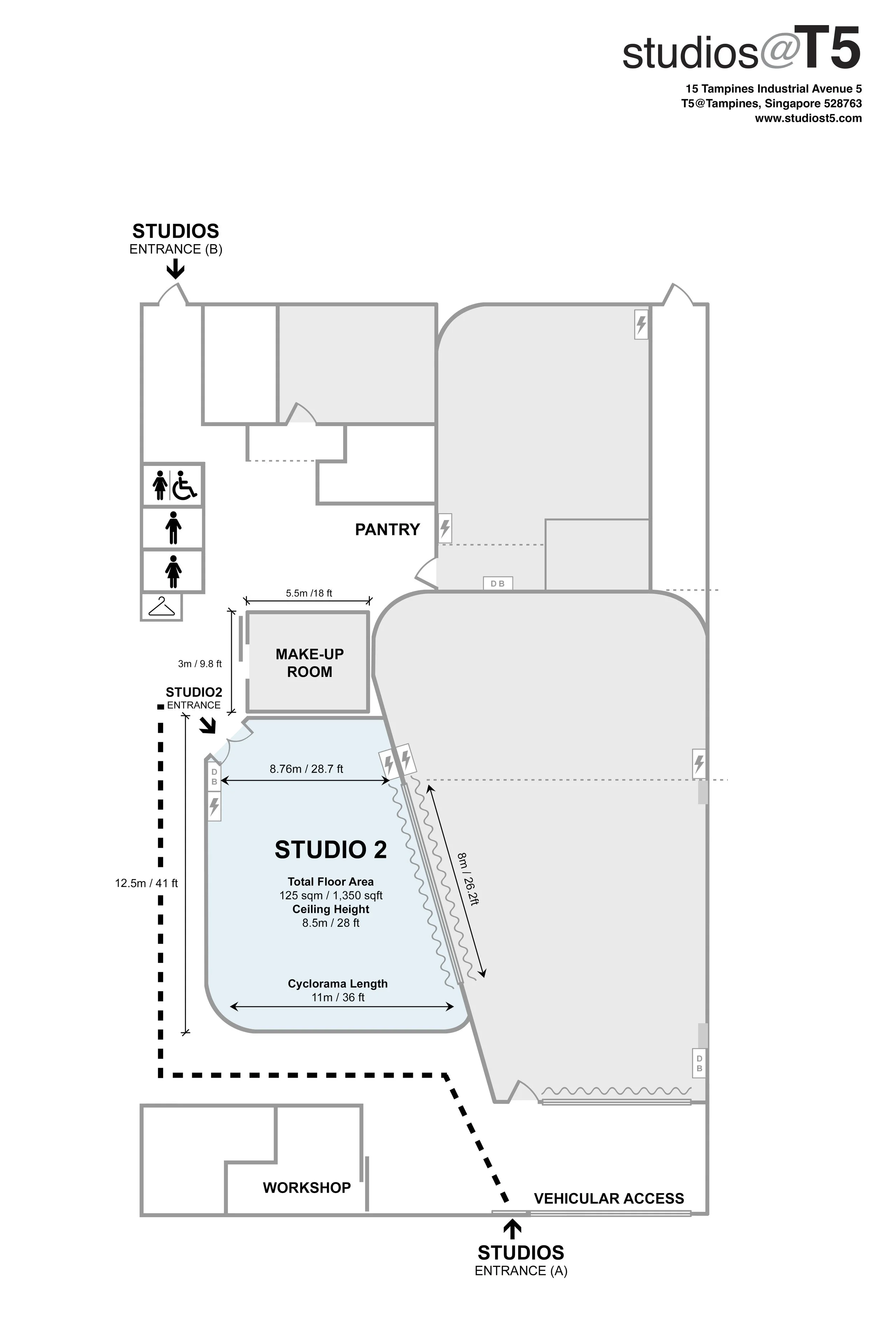 • Ceiling Height: 8.5m/28ft