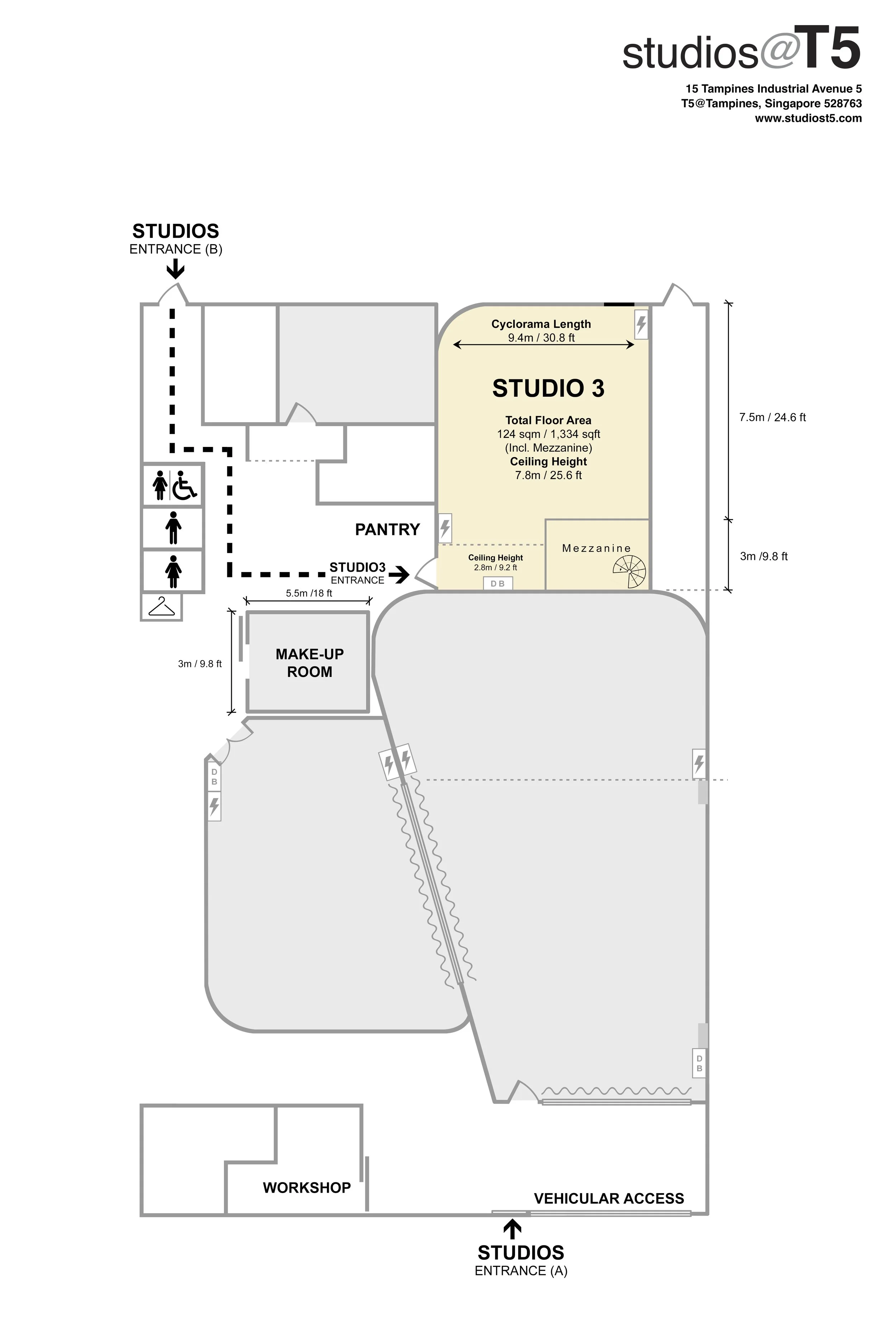 Studio Three features a mezzanine and up to 1,335 sq. ft of floor area, versatile for intimate portraiture or crafting your next tabletop masterpieces. Terms and conditions apply.